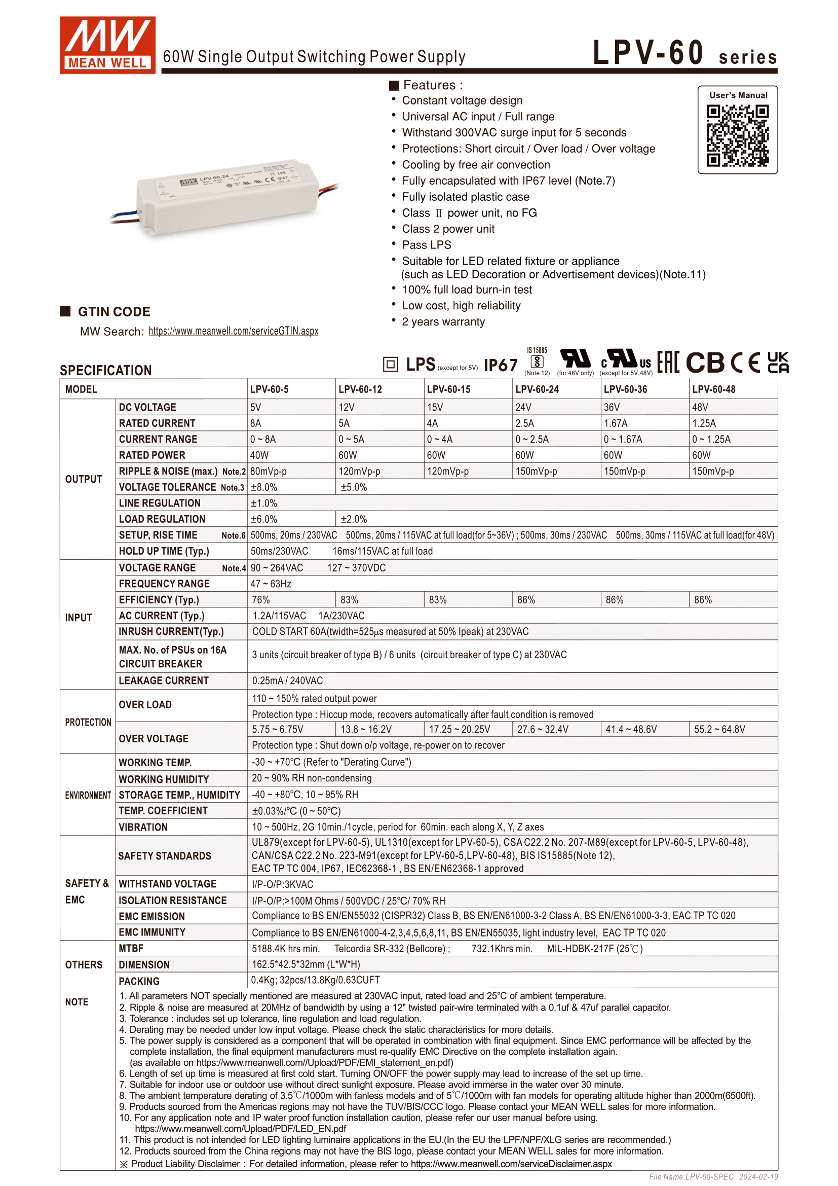 Fabricant : MEAN WELL